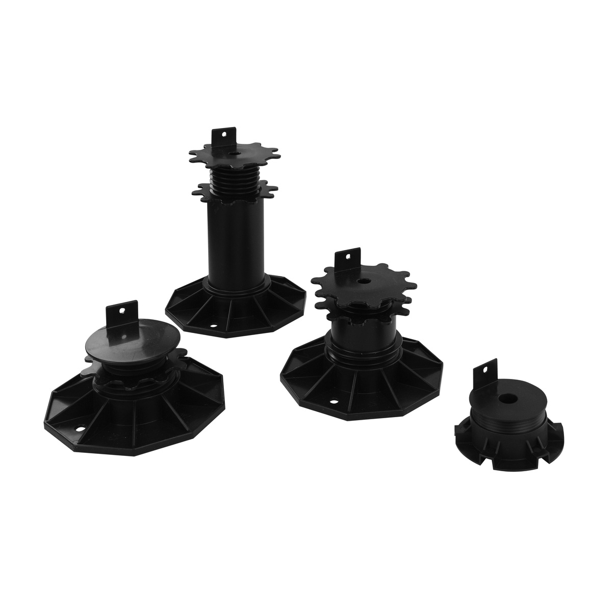 Aus strapazierfähigem Polypropylen zur Erstellung einer stabilen Unterkonstruktion im Terrassenbau. Unebenheiten im Fundament werden durch die individuelle Höhenverstellbarkeit ausgeglichen. Mit Bohrungen zur Kantholzverschraubung.