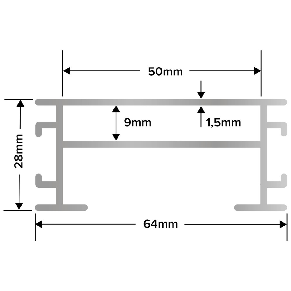Aluminium-Unterkonstruktionsschiene für den Terrassenbau, beidseitig verwendbar.